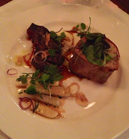 An incredible dish that excelled on so many levels. The royal reds were outstanding and the dish was packed with tremendous flavor plus nice textures via the puffed rice and cucumbers. I'm a muscadet fan and thought it paired well with this dish. It was Chateau L'oiseliniere 2004 Melon, Les Clos-Muscadet.